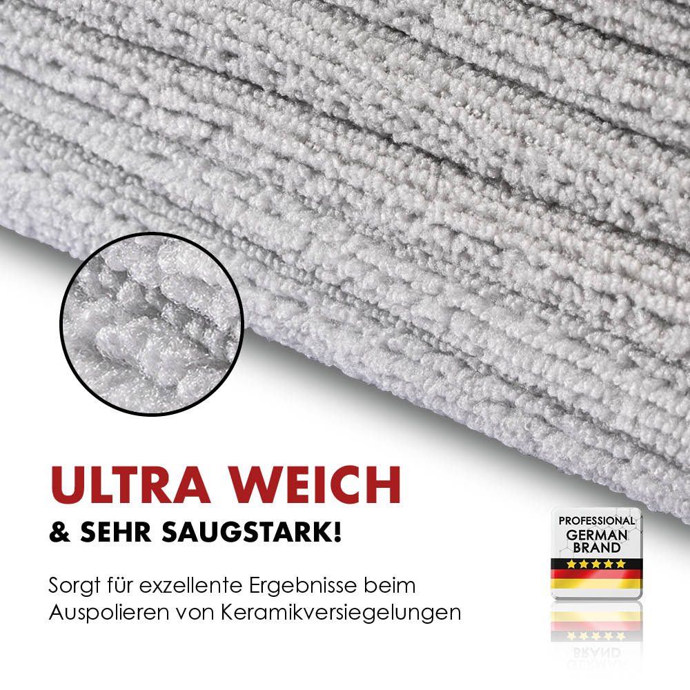 Whether polishing ceramic coatings or caring for your interior , the 300 GSM microfiber cloth delivers uncompromising performance . Soft, absorbent, and completely streak-free.